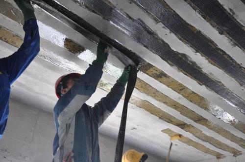 3、粘贴滚压。粘贴过程中要用专用滚筒沿纤维单一方向反复滚压,挤出气泡使树脂充分浸渍碳纤维。4、温度影响。要注意环境温度变化对树脂固化的影响,如气温低于要求则停止施工或采取必要的保温措施。